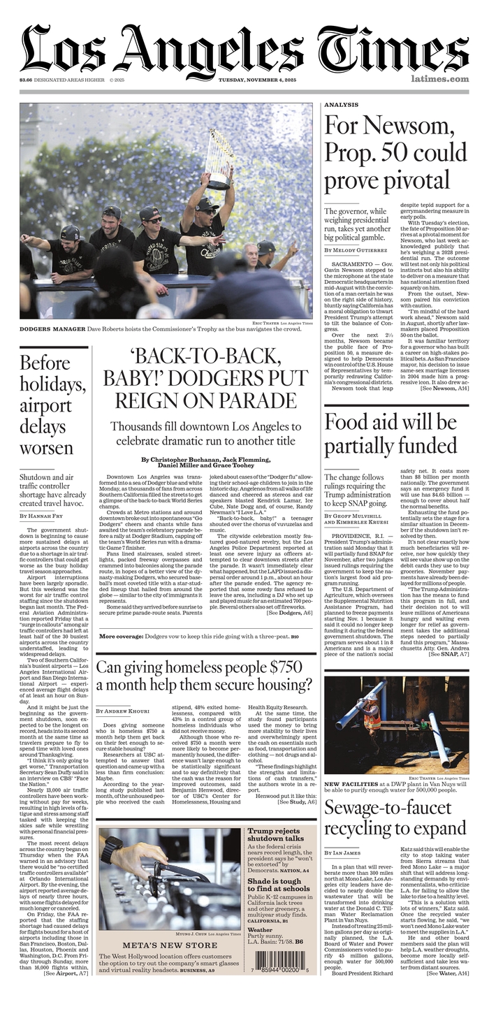 Διαβάστε το πρωτοσέλιδο της εφημερίδας Los Angeles Times για την 04-11-2025