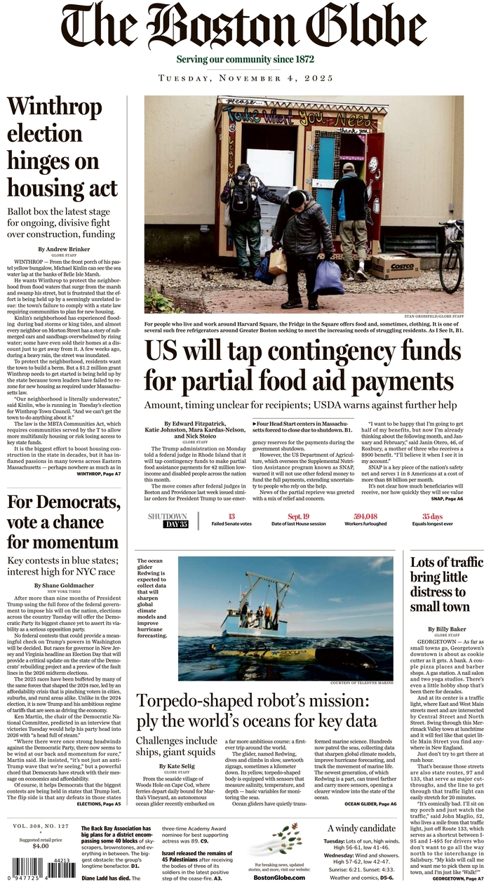 Διαβάστε το πρωτοσέλιδο της εφημερίδας The Boston Globe για την 04-11-2025