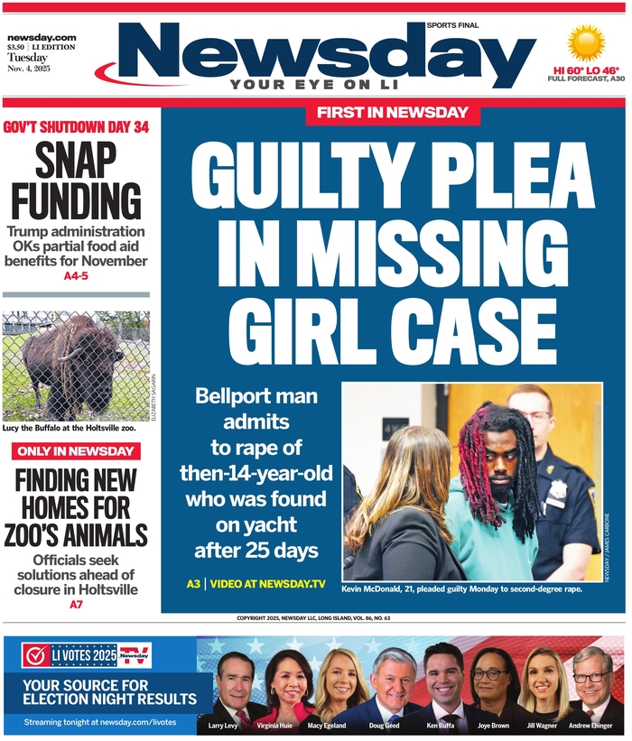 Διαβάστε το πρωτοσέλιδο της εφημερίδας Newsday για την 04-11-2025