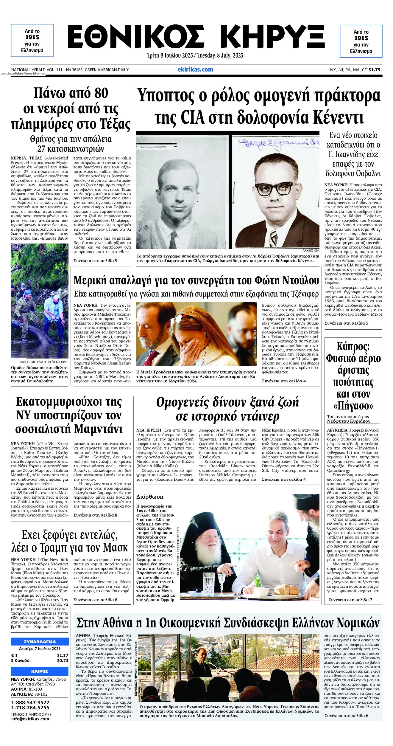 Διαβάστε το πρωτοσέλιδο της εφημερίδας Εθνικός Κήρυξ για την 08-07-2025