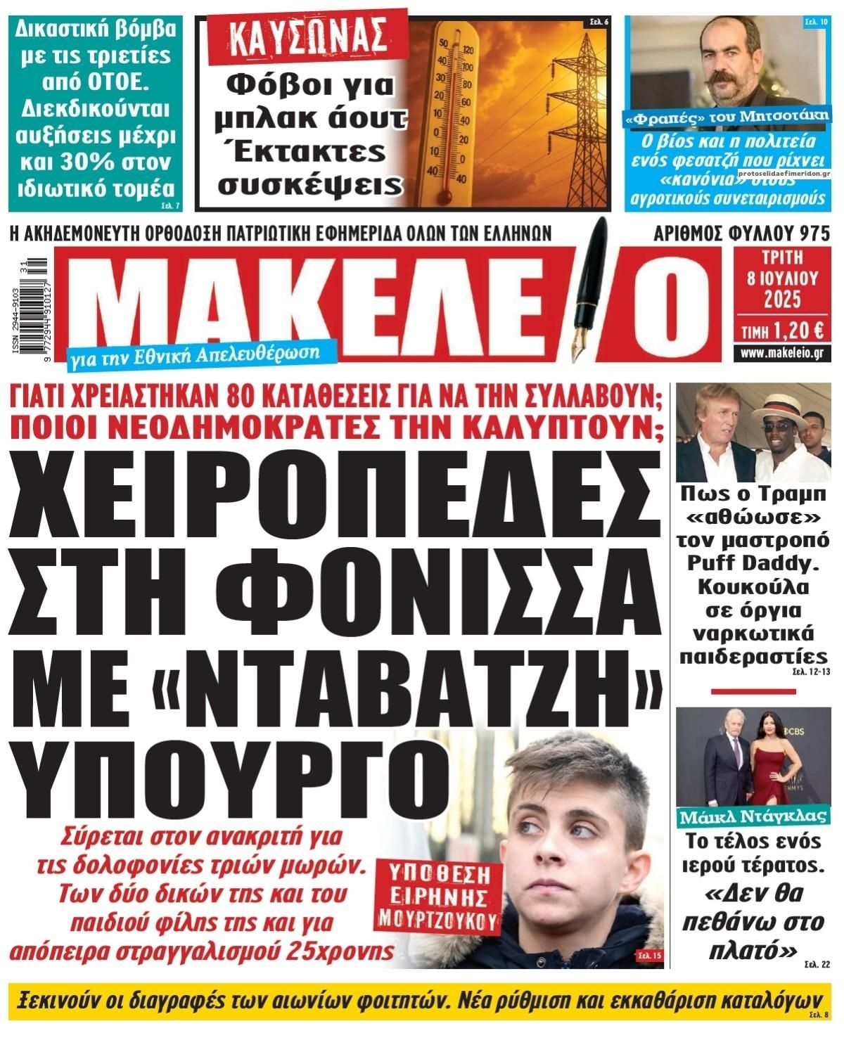 Διαβάστε το πρωτοσέλιδο της εφημερίδας Μακελειό για την 08-07-2025