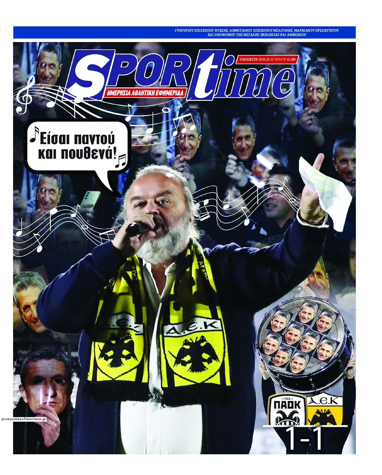 Διαβάστε το πρωτοσέλιδο της εφημερίδας Sportime για την 10-01-2025