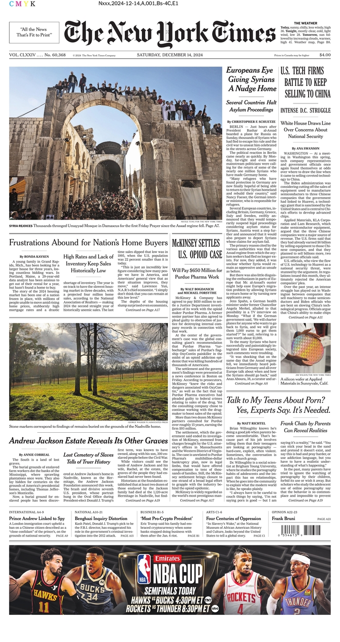 Διαβάστε το πρωτοσέλιδο της εφημερίδας The New York Times για την 14-12-2024