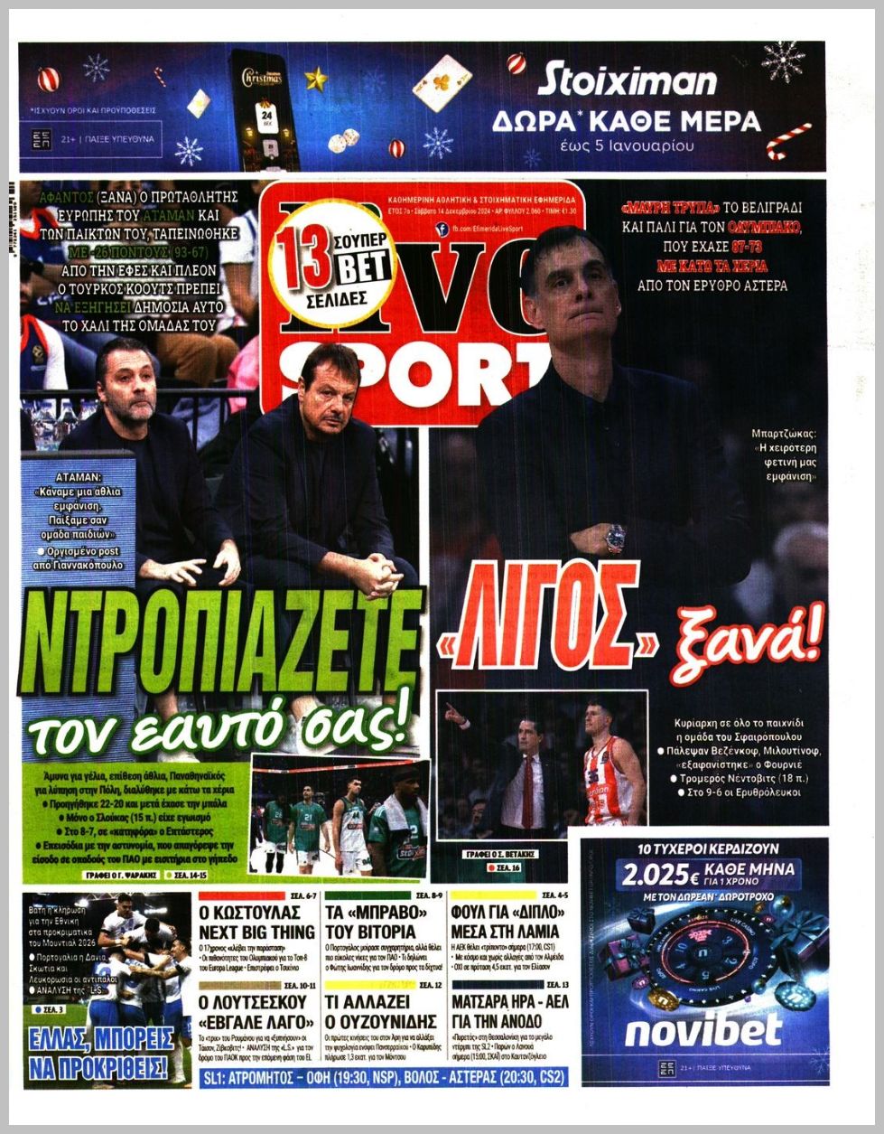 Διαβάστε το πρωτοσέλιδο της εφημερίδας Livesport για την 14-12-2024