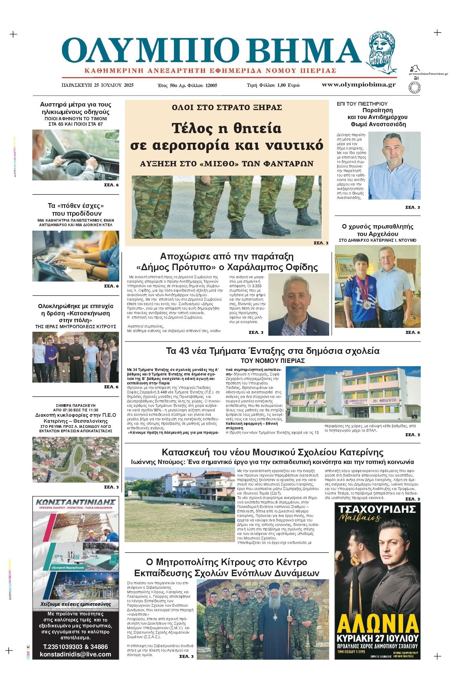 Διαβάστε το πρωτοσέλιδο της εφημερίδας Ολύμπιο Βήμα για την 25-07-2025