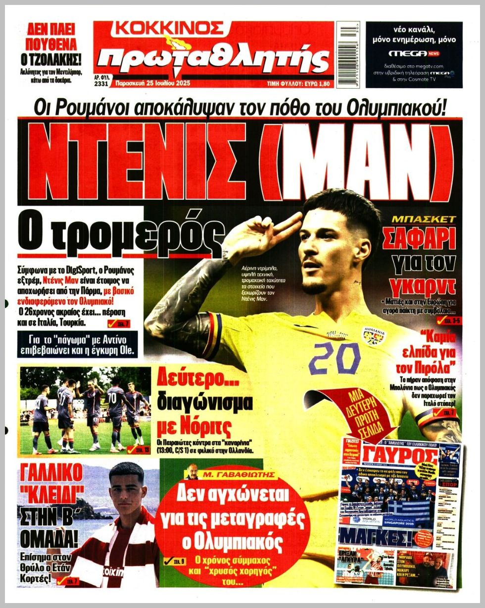 Διαβάστε το πρωτοσέλιδο της εφημερίδας Πρωταθλητής για την 25-07-2025