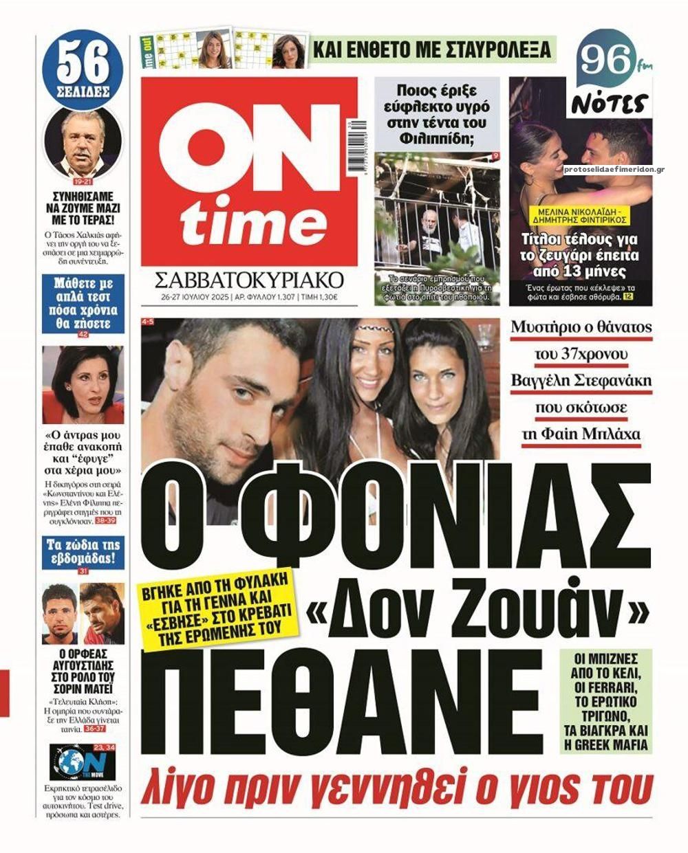 Διαβάστε το πρωτοσέλιδο της εφημερίδας On Time για την 26-07-2025